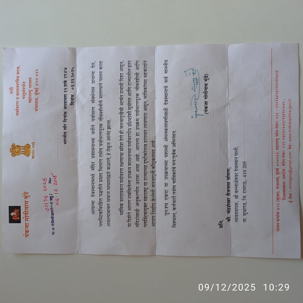 सध्याचे विश्वस्त मंडळ कार्यरत झाल्यावर देवस्थानला आय.एस.ओ. मान्यता घेण्याचे ठरविण्यात आले व त्याप्रमाणे सन २०१८ साली देवस्थानला ९००१ — २०१५ असे मान्यतापत्र मिळाले. ही मान्यता मिळवण्यासाठी लागणारे सर्व आवश्यक निर्देश देवस्थानने पूर्ण केलेले आहेत.