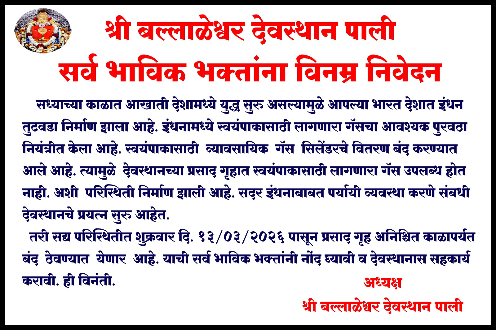 श्री बल्लाळेश्वराचे महाराष्ट्रात, महाराष्ट्राबाहेर किंबहुना देशाविदेशात असंख्य भक्त आहेत. जे गणेश भक्त श्रींची कथा, मंदिराची ऐतिहासिक पार्श्वभूमी, संस्थेच्या कारभाराची पद्धत, संस्थेतर्फे केलेल्या सुधारणा तसेच अभिषेक योजना या विषयी अनभिज्ञ आहेत त्यांना या गोष्टींची माहिती व्हावी म्हणून हा वेबसाईट प्रपंच.
